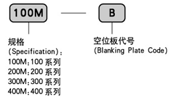 連接板型號ABCDEFGHI100M□F19205819(n-1)+2819(n-1)+38φ4.5G1/84025200M□F23206023(n-1)+3523(n-1)+46φ4.5G1/44225300M□F28267428(n-1)+4528(n-1)+56φ4.5G3/85030400M□F353210035(n-1)+5635(n-1)+70φ4.5G1/26541● 空位板訂購代碼