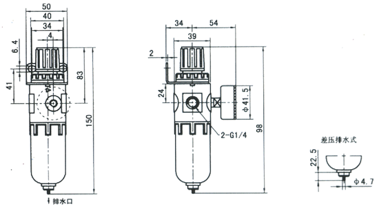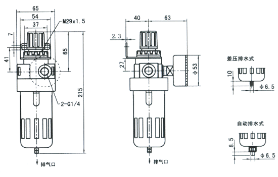 規(guī) 格AFR/BFR2000AFR/BFR3000使用流體空氣(Air)接管口徑G1/4G3/8過濾精度5μm使用壓力范圍0~1.0MPa使用溫度)0~60℃壓力表口徑G1/8G1/4濾水杯容量15CM360CM3材質(zhì)本體鋁合金壓鑄品容杯聚碳酸酯保護(hù)杯罩-鐵■ 外形尺寸