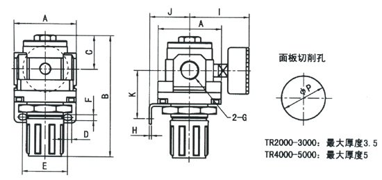 規(guī)格AR2000-02AR3000-03AR4000-04AR4000-06AR5000-10使用流體空氣接管口徑G1/4G3/8G1/2G3/4G1使用壓力范圍0~1.0MPa使用溫度0~60℃閥型帶溢流型壓力表口徑G1/8G1/4材質(zhì)閥體 鋁合金壓鑄品閥蓋增強(qiáng)尼龍