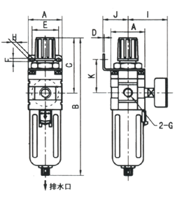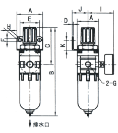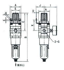 規(guī)格AW2000-02AW3000-03AW4000-04AW4000-06AW5000-10使用流體空氣接管口徑G1/4G3/8G1/2G3/4G1過濾精度5μm使用壓力范圍0~1.0MPa使用溫度0~60℃閥型帶溢流型壓力表口徑G1/8G1/4材質本體鋁合金壓鑄品容杯聚碳酸酯保護杯罩-鐵■ 外形尺寸