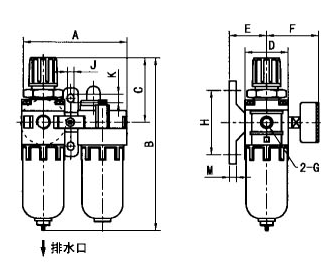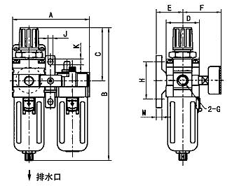 型 號ABCDEFGHJKMAC2000-029016578405730G1/4488.55.55AC3000-0311721192536141G3/8701177AC4000-041542631127070.550G1/2801197AC4000-061542631127070.550G3/4801197AC5000-10 198 312 114 90 70.5 70 G1 80 13 10 10