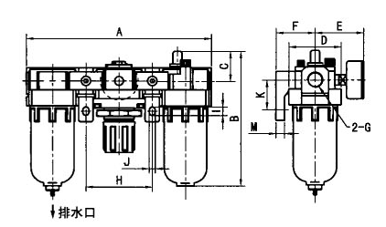 型 號ABCDEFGHIJKMAC2000-0214012538405730G1/4508.55.5245AC3000-03181156.538536141G3/864117357AC4000-04238191417065.550G1/284139407AC4000-06255191417065.550G3/488139407AC5000-10300271489065.570G110516105010