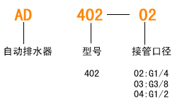 規(guī) 格AD402-02AD402-03AD402-04保證耐壓1.5MPa使用壓力0.15~1.0MPa使用溫度0~60℃接管口徑G1/4G3/8G1/2排水口徑G1/8G1/4G3/8工作介質(zhì)壓縮氣體■ 工作原理